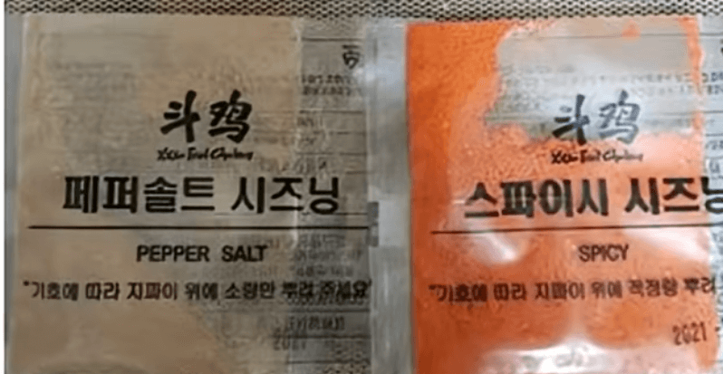 일단 가격적인으로는 정말 깔게 없는고, 롯데리아는. 국내산 아닌라는데. 이건 국내산 닭이고. 뿌려 먹는 시즈닝도 따로 나오는게 포인트